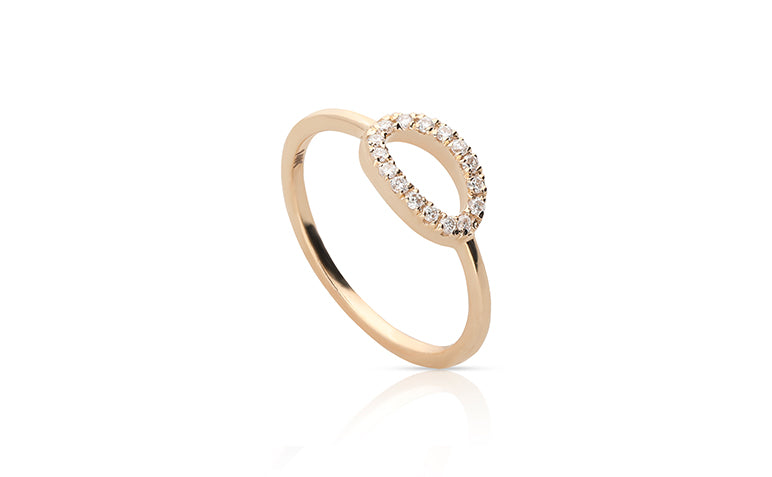 The Eternal Open Oval Ring is an homage to infinity, to the endless horizons where the sky kisses the earth, to the timeless dance of the ocean's waves. Crafted in solid gold, it features an open oval that lies horizontally, a design choice that symbolizes continuity and completeness. The oval itself is lined with diamonds, each catching the light, mirroring the perpetual dance of light on water. This ring isn't merely worn; it is borne as a symbol of eternal elegance, perfect for the woman whose style is an echo of the infinite, whose grace is as boundless as the sea.